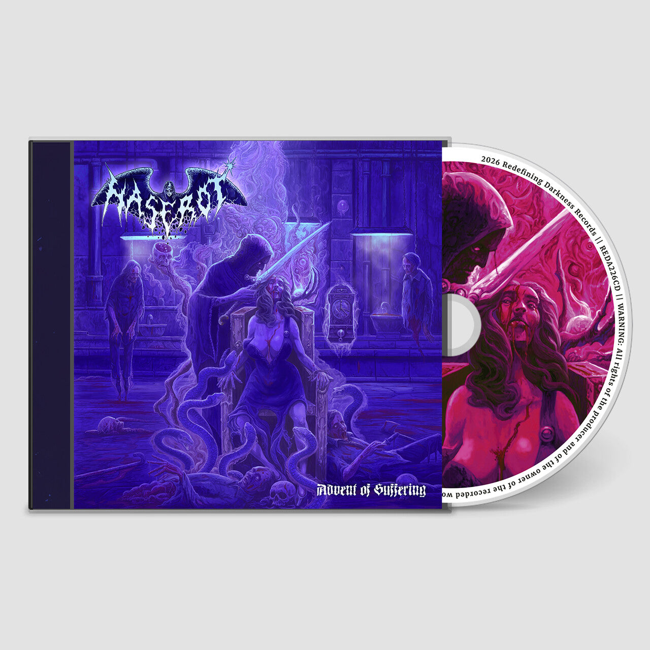 With Advent of Suffering, Haserot expand upon that foundation with a darker, heavier, and more fully realized statement of intent. The album amplifies the band’s trademark blend of crushing riffs, cavernous vocals, and sinister melodies, further cementing their dedication to the traditions of classic death metal while pushing their sound into new territory.
