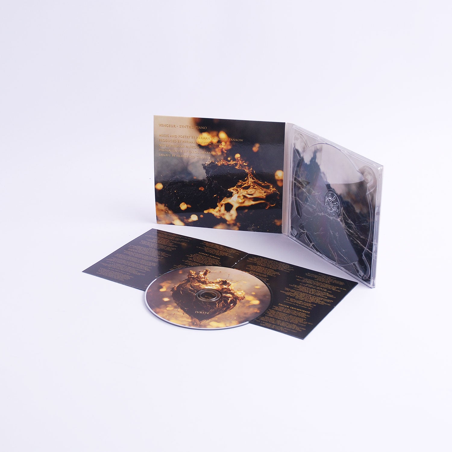 “Par Feu et Par Flammes” is a reflection on religion, sex, love and solitude as seen through the perspective of someone who really feels the weight of existence. Entirely instrumental but accompanied by Herman Pańkow’s long poems, the album works around a set of well-defined melodies that seem to come back cyclically, thus giving cohesion and coherence to a work of dark beauty. It’s a concentration of bitterness, sadness, resignation, sin, abandonment, ecstasy, punishment, boredom, loneliness, lust and torment. In other words, Vengeur’s music is the epitome of the Night, of which it gives us both the romantic charm and the depths of melancholy.